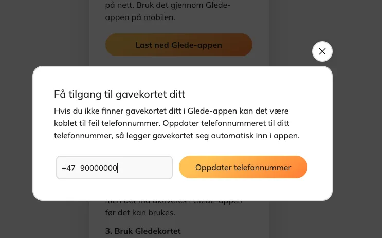 Har du problemer med å logge inn i Glede-appen eller finner ikke Glede-gavekortet inne i Glede-appen? I 99,9 % av tilfellene skyldes dette at feil telefonnummer er tilknyttet gaven din. Heldigvis er dette enkelt å rette opp! Følg denne enkle guiden, så er problemet løst på under to minutter.